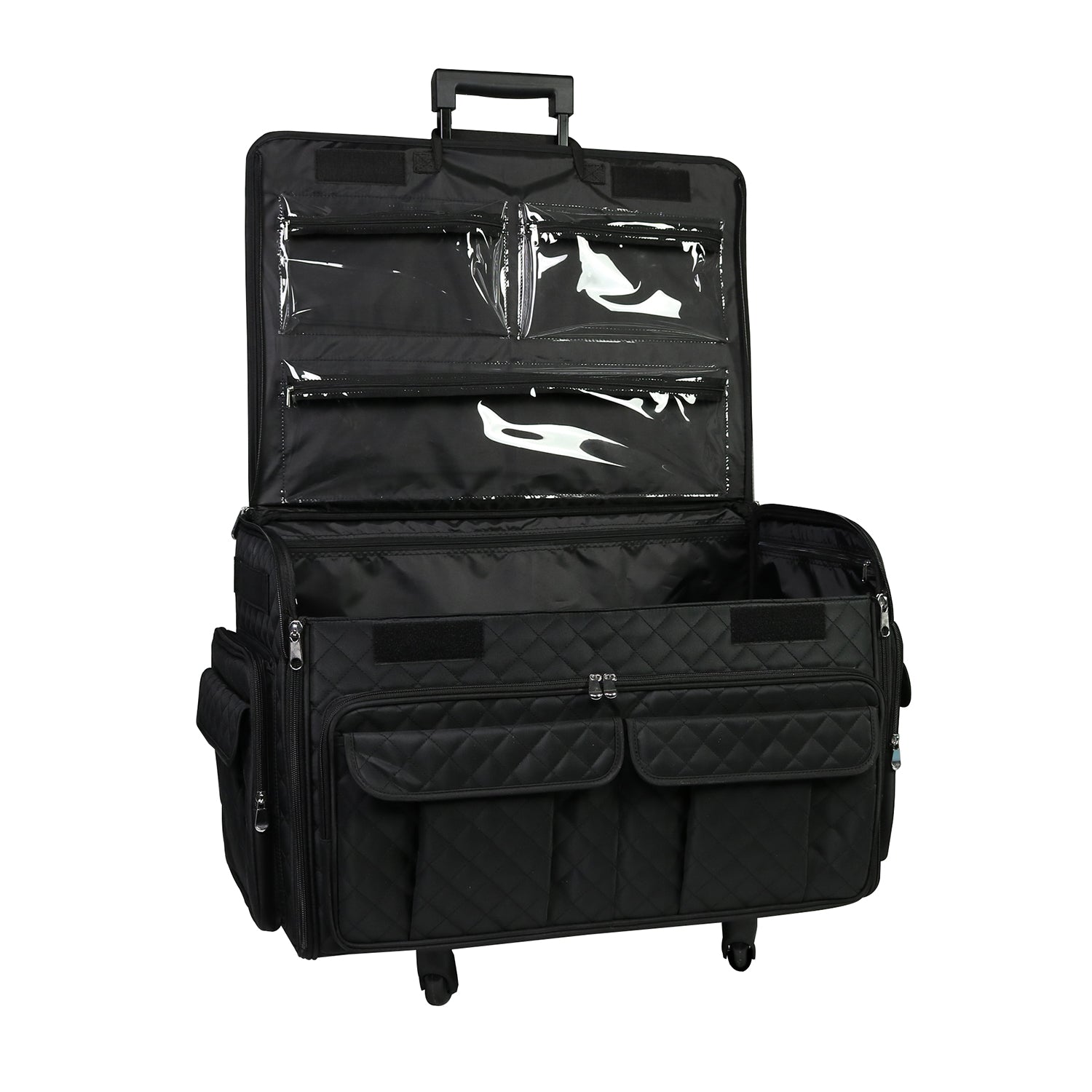 Everything Mary 4 Wheels Xl Collapsible Deluxe Sewing Machine Trolley Black Quilted Rolling Carrying Storage Case For Large Brother Singer Bernina Machines Universal Travel Tote Bag